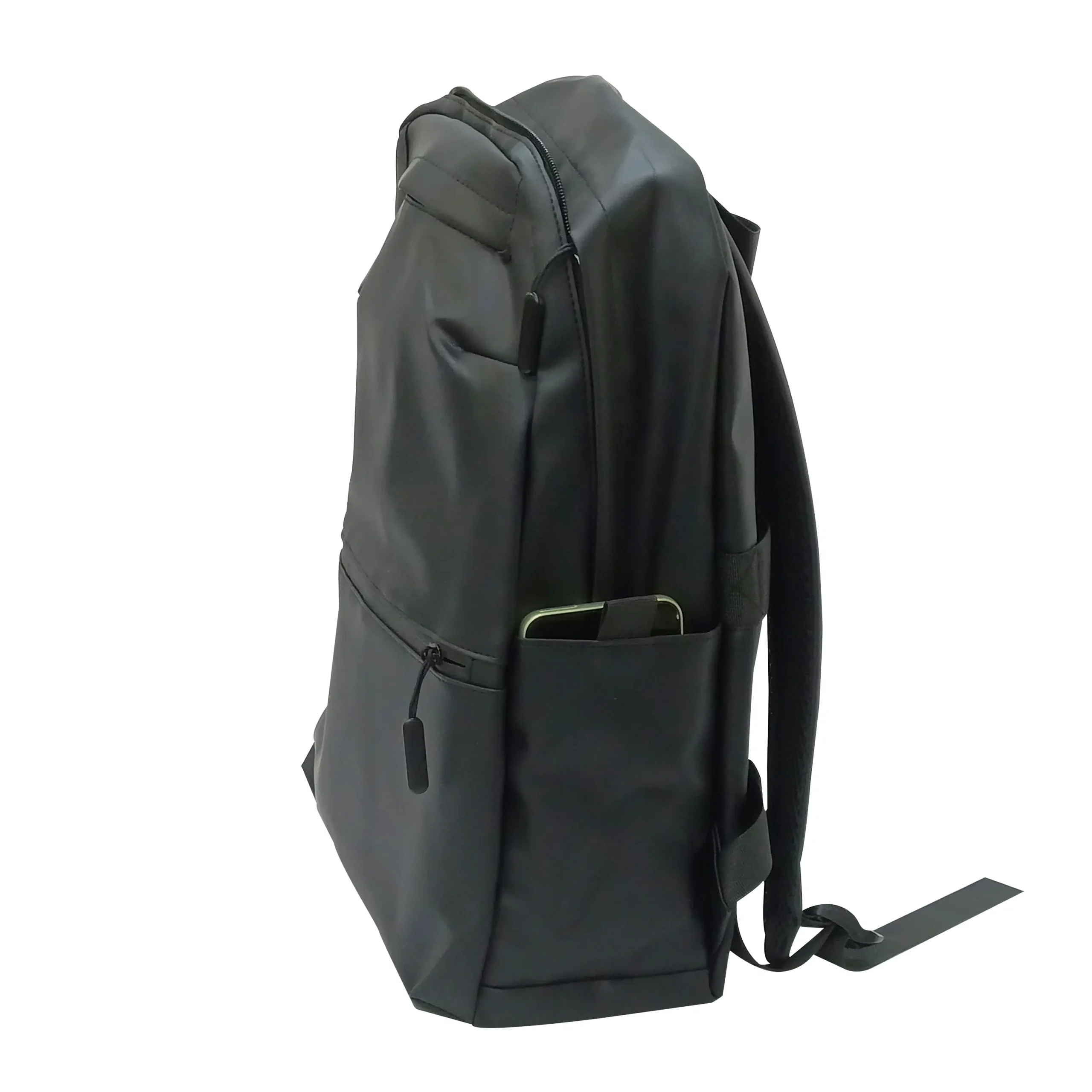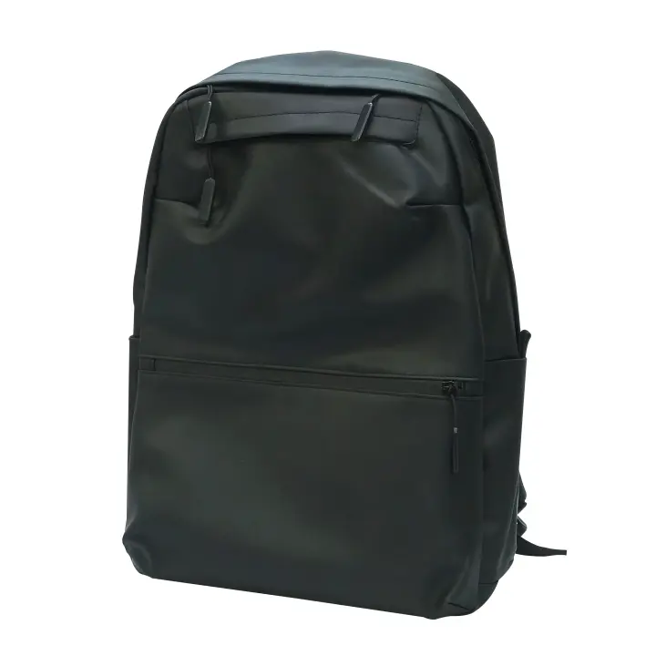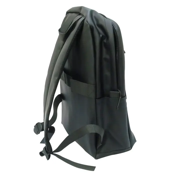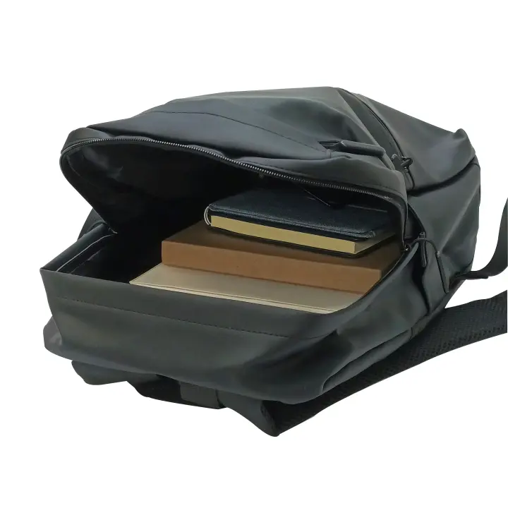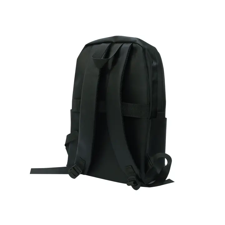 กระเป๋าเป้สีดำ สะพายหลัง ใส่คอมพิวเตอร์โน๊ตบุ้ค อุปกรณ์ต่าง สมุดบันทึก กระเป๋าผ้าหนังเทียม รูปทรงสวยงามทันสมัย เลือกสกรีนโลโก้องค์กรบนกระเป๋า