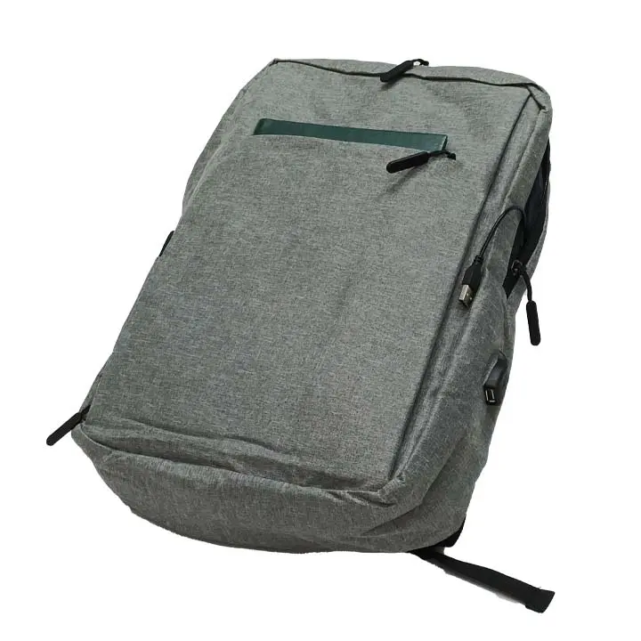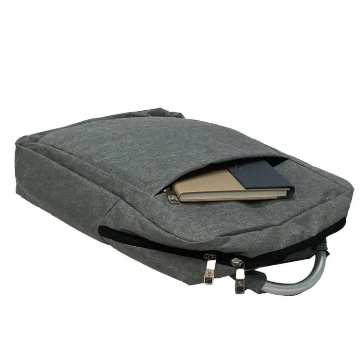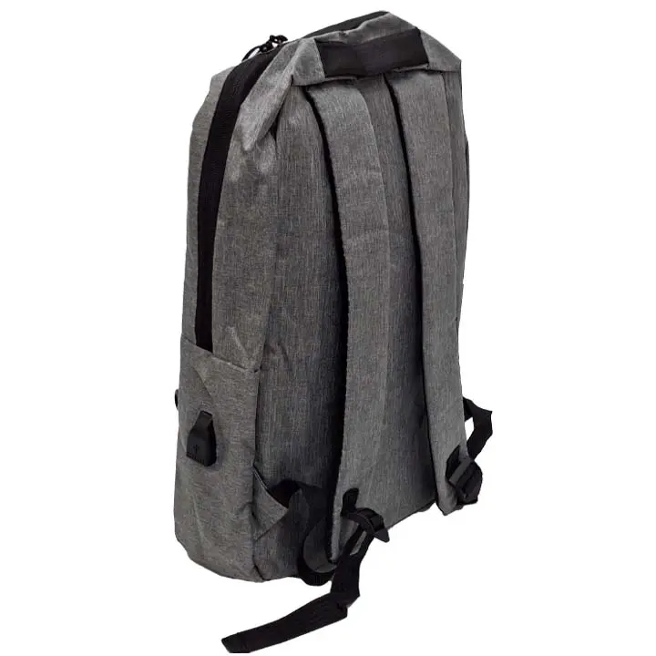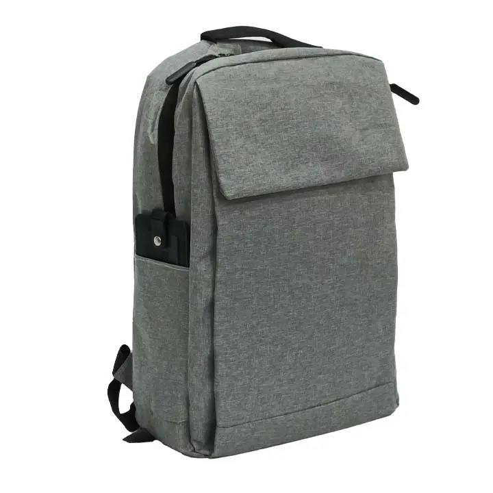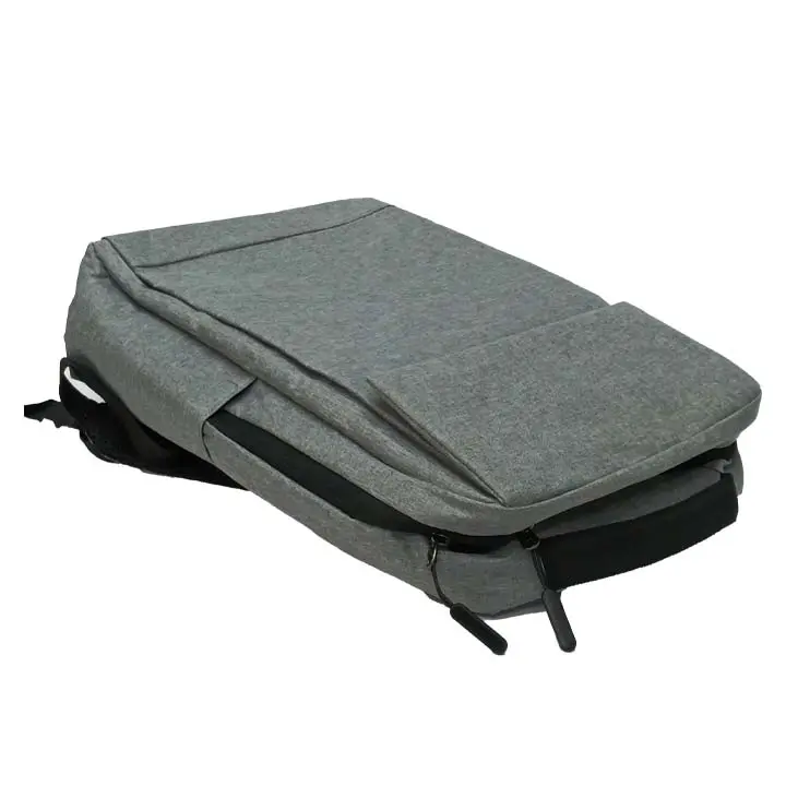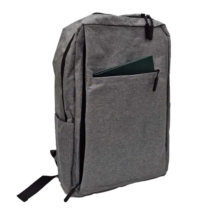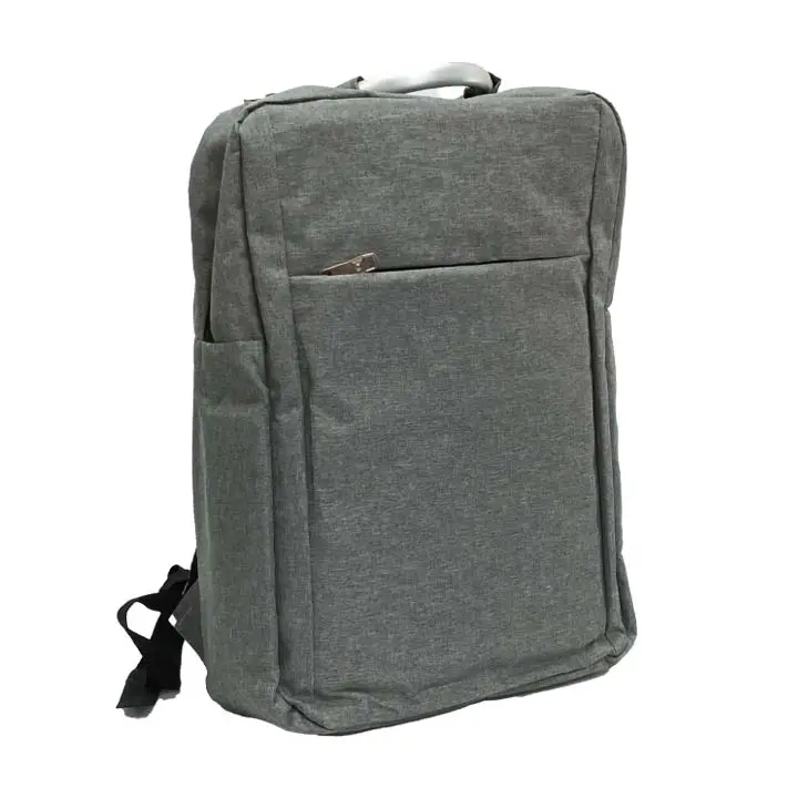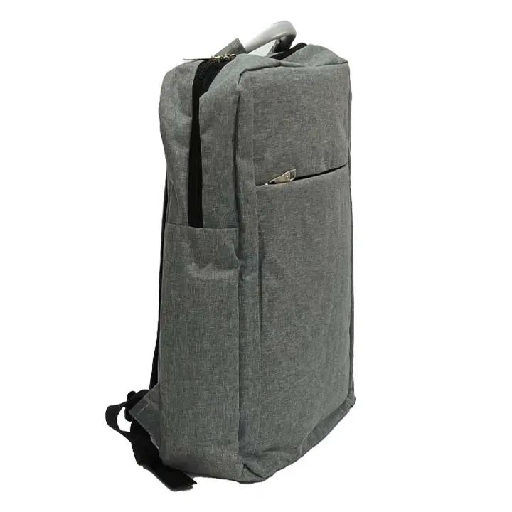 กระเป๋าเป้สะพายหลัง ผ้าแคนวาสสีเทา สำหรับใส่คอมพิวเตอร์โน๊ตบุ้ค อุปกรณ์เครื่องเขียน สมุดบันทึก สินค้าพรีเมี่ยม รูปทรงมินิมอล ขนาดกะทัดรัด พร้อมสกรีนโลโก้องค์กรบนกระเป๋า