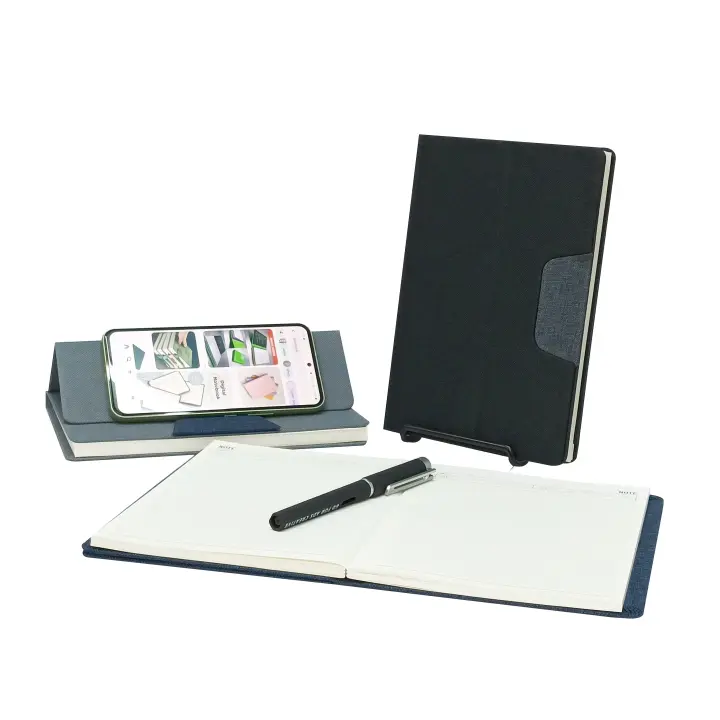 สมุดบันทึก A5 มาตรฐาน หุ้มปกหนังมุมมนน่าใช้ เบสิกดีไซน์ มีสีหนังให้เลือกมากกว่า 200 เฉดสี มาพร้อมสายรัดเล่ม และแบบเรียบไม่ใช้สายรัด เลือกวางโลโก้องค์กร หรือตกแต่งลวดลายด้วยการปั๊มข้อความโลโก้บนแผ่นหนังได้ตามต้องการ