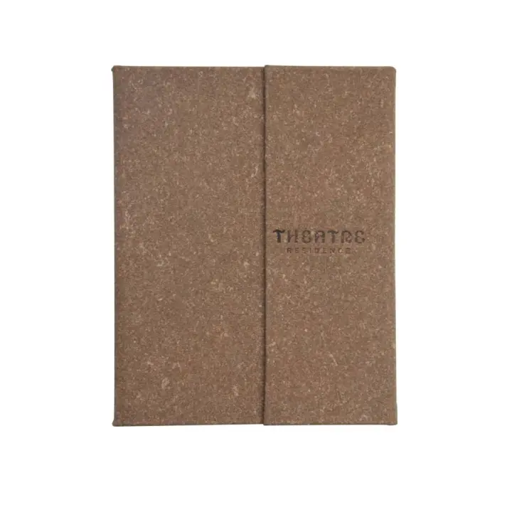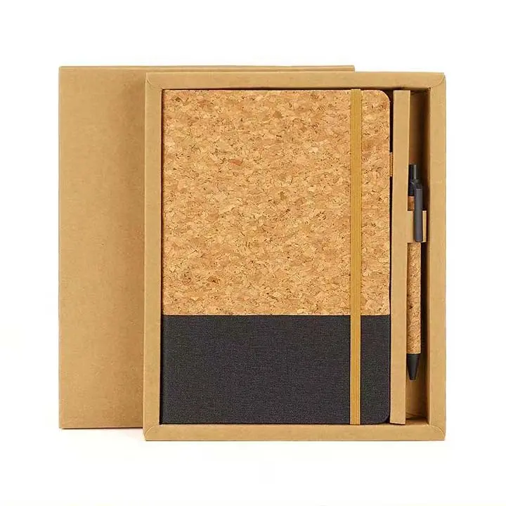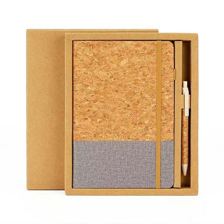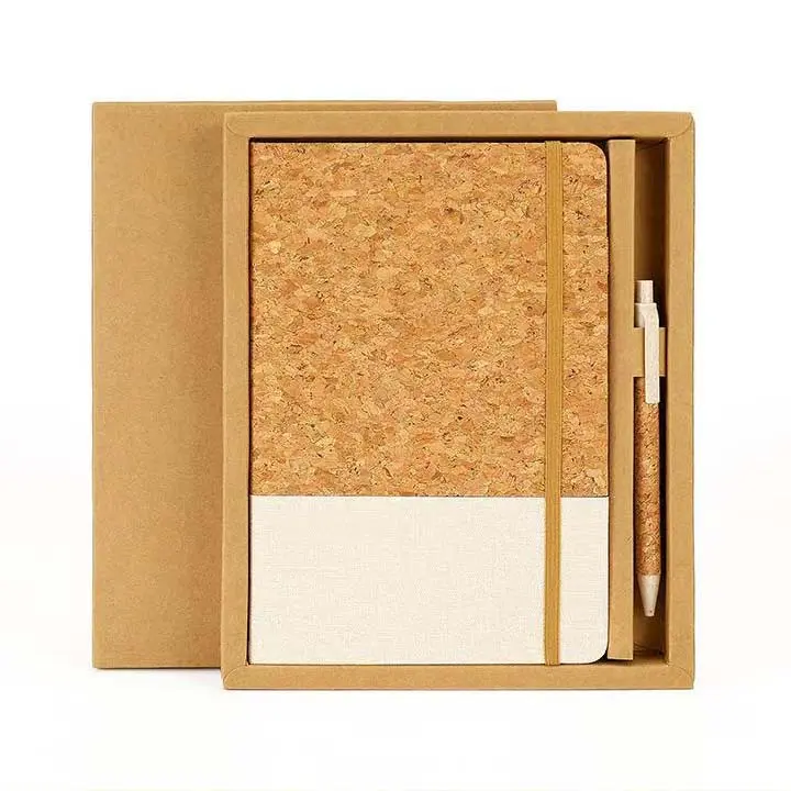 สมุดไดอารี่ปกแข็งมุมมน ทูโทน ปกไม้คอร์กรีไซเคิล และผ้าลินิน เลือกสีผ้าได้ เป็นมิตรกับสิ่งแวดล้อม ให้ความรู้สึกสัมผัสถึงธรรมชาติ พร้อมยางยืดรัดเล่มและสายรัดปากกา เรียบง่ายแต่มีเอกลักษณ์ เหมาะสำหรับผู้ที่ต้องการสมุดโน๊ตที่ทั้งดูดีและสื่อถึงความยั่งยืน เสริมภาพลักษณ์องค์กรเป็นอย่างดี