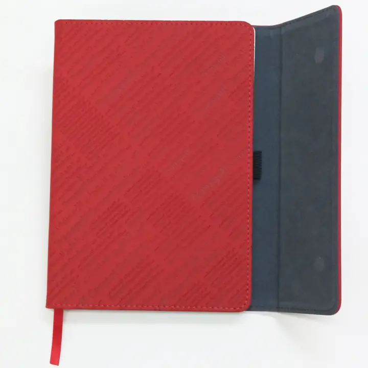 สมุดบันทึกออกแบบเรียบหรู ตกแต่งด้วยลูกเล่นบนหน้าปก พร้อมสายรัดปากกา สะดวกในการใช้งาน ผลิตจากวัสดุคุณภาพสูง สวยงามน่าใช้ เลือกสีปกและแมทช์ลวดลายบนหนังเพื่อให้เข้ากับแบรนด์ของคุณได้
