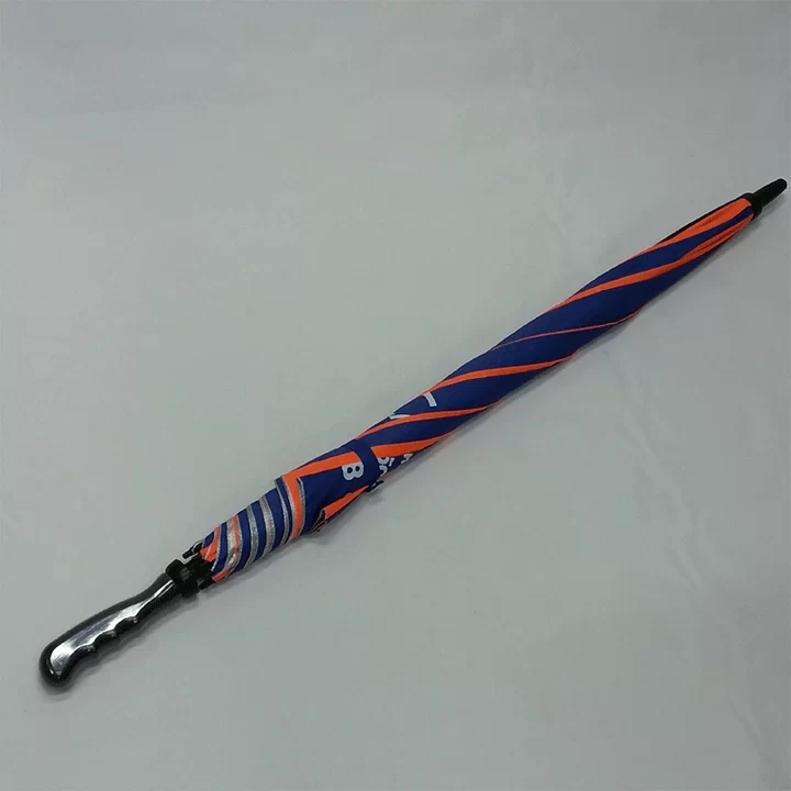 ร่มยาว กันฝนและกันรังสี UV ผ้าร่มชั้นเดียว เคลือบผงจี้กันแสงและ UV มีปุ่มกดเปิดเพื่อกางร่ม พร้อมปลอกร่มเมื่อพับเก็บ เป็นสินค้านำเข้า ผลิตในประเทศจีน พร้อมสกรีนโลโก้ 1 ตำแหน่ง